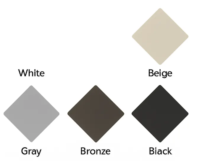 Choosing the right screen color is simple with Fenetex. Our standard color selections are designed to blend seamlessly with your architecture and framework, offering a clean, cohesive look. For unique designs, custom powder coating is available to match any project. All finishes are marine-grade and infused with UV ray inhibitors—built to endure the elements and maintain their beauty for years to come.