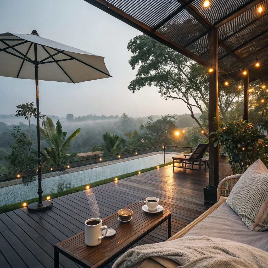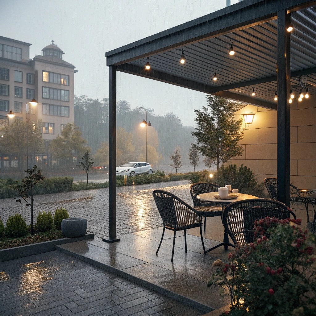 Rain drums softly on clear screens while you stay perfectly dry. The view stays beautiful, trees swaying, droplets falling. Your morning routine continues uninterrupted, exactly as planned.